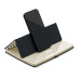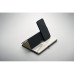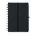A5 notebook with 600D RPET hard cover with smartphone stand function. Twin-wire. 160 lined pages (80 sheets). 70 gsm recycled paper. Elastic closure strap.