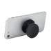 Round shaped foldable phone accessory in ABS with two functions: phone stand and holder. It has 3M sticker on the back.