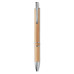 Push button pen in aluminium fittings with bamboo barrel. Blue ink. Bamboo is a natural product, there may be slight variations in colour and size per item, which can affect the final decoration outcome.