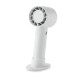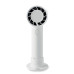 Small portable fan with additional desk stand with phone stand option. 3 speed settings. USB port rechargeable battery 2000 mAh.