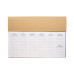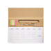 125 page weekly desk planner in 6 languages (EN/DE/FR/ES/IT/NL/PL) with kraft paper cover, carton barrel blue ink push button pen, wooden ruler and sticky note memo pad.
