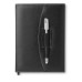 A5 PU notebook portfolio with contrast stiching and pen. 240 lined pages (120 sheets). Matching metal pen. Black ink.
