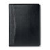 A4 faux leather portfolio. 20 lined sheets notepad. Solar powered calculator. Metal ball pen. Blue ink.