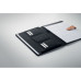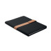 A4 portfolio in RPET with faux leather details. Replaceable A4 notepad.30 recycled paper lined pages. Pen holder. 4 cardholders, 3 small pockets and one big compartment. Magnetic strap closure. FSC®-certified | FSC MIX , P8.6, FSC-C213206