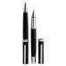 Pen set made from brass and stainless steel in a gift box. Twist ball pen blue ink and roller pen black ink.