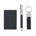 3 piece gift set in gift box. Including metal twist ball pen with RPET polyester detail, RPET polyester key ring and RPET polyester cardholder with metal plate. Blue ink.