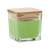 Fragranced plant based wax candle in squared glass holder with a bamboo lid. 50 gr. Burn time: 8 hours. White(06) vanilla, yellow(08) lemon, orange(10) orange, green(48) apple.