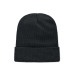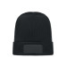 Unisex knitted beanie in soft stretchable RPET polyester with cuff and patch.