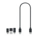 3-in-1 charging and data transfer cable with different connectors. Presented in acacia wood box. Type-C to Type C cable, C to USB-A, C to micro-B, C to lightning connectors....