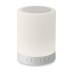 Table or camping wireless speaker with hands free function, SD card slot and regulating colour and brightness touch. 6 colours changing light. Rechargeable Li-Ion 2000 mAh. Output data: 3W. Playing time aprox. 2h.