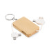 Bamboo cover key ring charging cable. Input: 2-in-1 Type-C and Type-A. Output: Type-C and micro-B (2 in 1 pin).