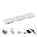 Magnetic charging station in ABS. 3 wireless charging spots. 1 x 15W, 1 x 5W for TWS and 1 Apple Watch charger (3W). 2 Type-C & 2 USB-A HUBS. Integrated cable input: connector from Type-C to USB-A.