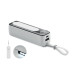 Powerbank with flashlight. 5000 mAh. ABS. Outputs: USB-C and USB-A up to 10W. Input: USB-C 10W. 6 COB lights (18 lm each). Built-in USB-C cable to USB-C cable with USB-A adapter included.