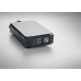 Solar powerbank. 8000 mAh. ABS. Outputs: USB-A up to 10W. Input: USB-C 10W. Solar input 5V/200mA. Crank handle and 100 lm LED light. USB-C to USB-C cable with USB-A adapter and carabiner included.