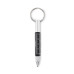 Key ring with twist action pen in recycled aluminium with 4cm/ 1,5 inch ruler, stylus and 2 in 1 phillips and flat head screw driver. Black ink.