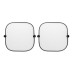 Set of 2 car window shades made of polyester. Includes 2 suction cup holders. Perfect for both winter and summer to keep the weather at bay. This will keep your car cool during the summer by reflecting the sunlight away, and will keep the frost off your windshield when placed on the outside by offering a layer of protection.