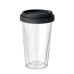 Double wall high borosilicate glass with silicone lid. Capacity 350ml