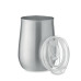 Recycled stainless steel (90% recycled stainless and 10% stainless steel) powder coated mug with lid with sliding sip hole cover. Capacity: 500 ml. As this is a single walled mug heat transfer can still occur.