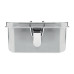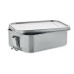 Stainless Steel lunch box with strong and secure side buckles. Including inner divider. Capacity: 1200 ml.