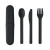 Reusable cutlery set with case in PLA corn. Each set includes a fork, a knife, a spoon and a practical portable utensils case.