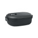 Lunch box with air tight lid made of PP both out side and inside. Microwave and dishwasher safe. Capacity 750 ml.