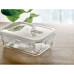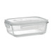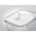 High borosilicate glass lunch box with air tight locking lid in PP. Suitable for microwave. Capacity 900 ml.
