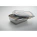 Recycled stainless steel lunch box with PP lid and 4 side clasp closure. Including separator. Capacity: 1500 ml.