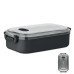 Lunch box made of PP with additional recycled stainless steel inner layer. Airtight AS lid that keeps food fresh and secure during transport. Capacity 750 ml without tray and 650 ml with tray.