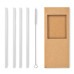Pack of 4 reusable straws in high borosilicate glass with 1 cleaning brush.
