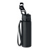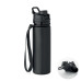 Foldable silicone sports bottle with PP lid, handle, polyester strap, and transparent buckle to secure when folded. Leak-free. Capacity: 500 ml.