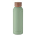 Single wall bottle recycled stainless steel (90% recycled stainless steel and 10% stainless steel) with rubber finish and acacia wooden lid finish. Leak-free. Capacity: 700 ml. As this is a single walled bottle heat transfer can still occur.